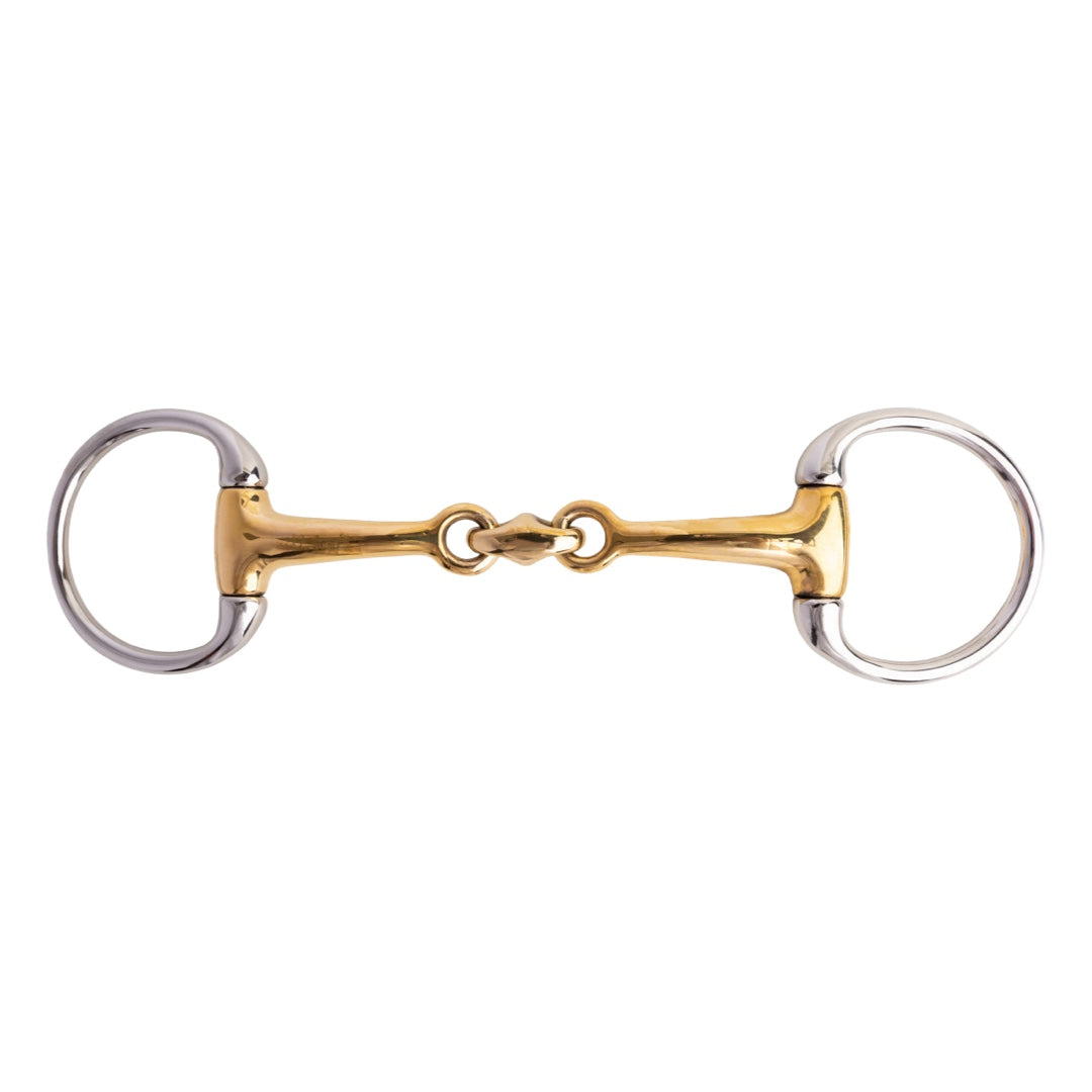 The Cavalier Eggbutt Training Link Snaffle Bit has a gold mouth piece with stainless steel rings.