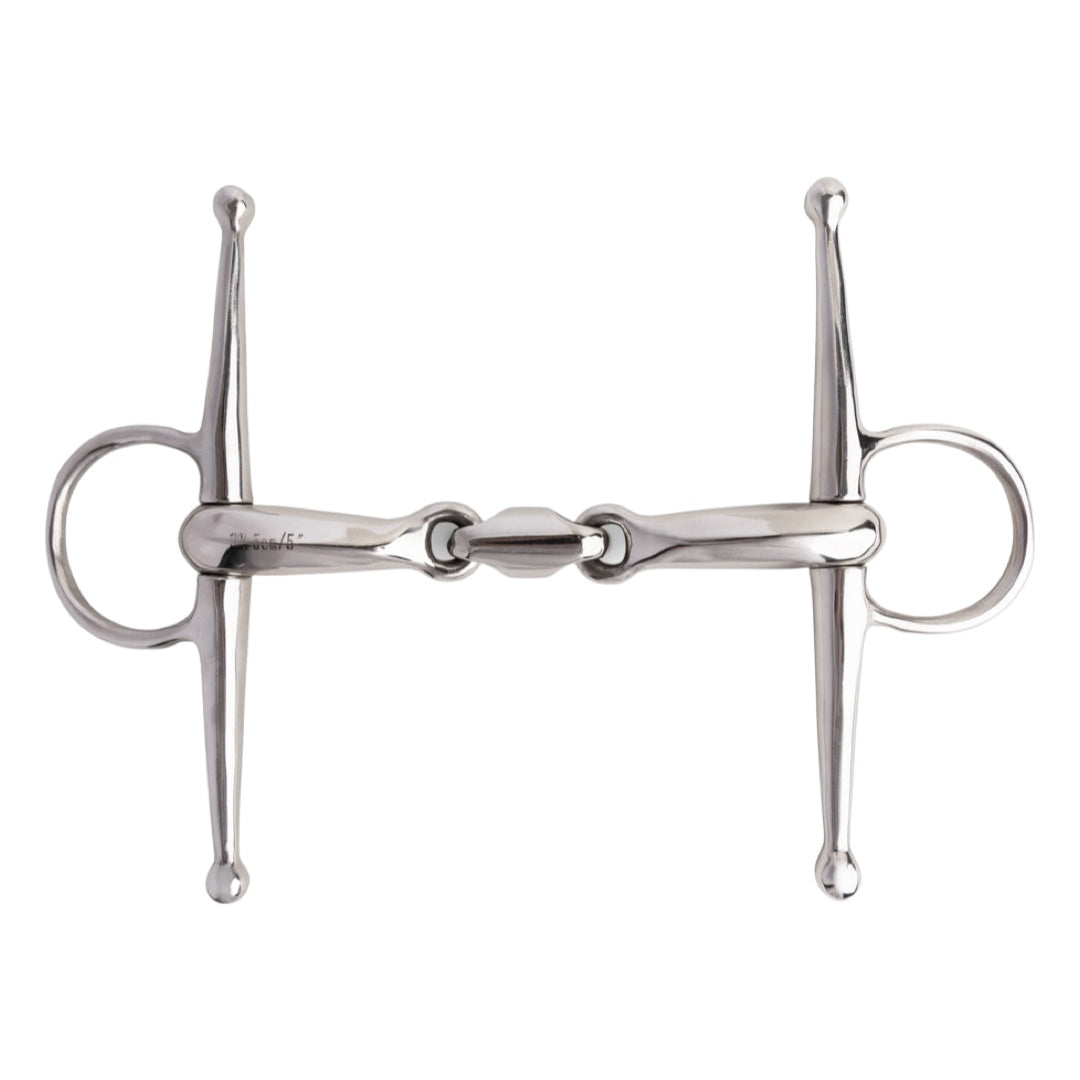 The cheeks on the bit create a positive action against the horse's cheeks when asked to turn. The full cheek design also prevents the bit being dragged through the horses mouth.