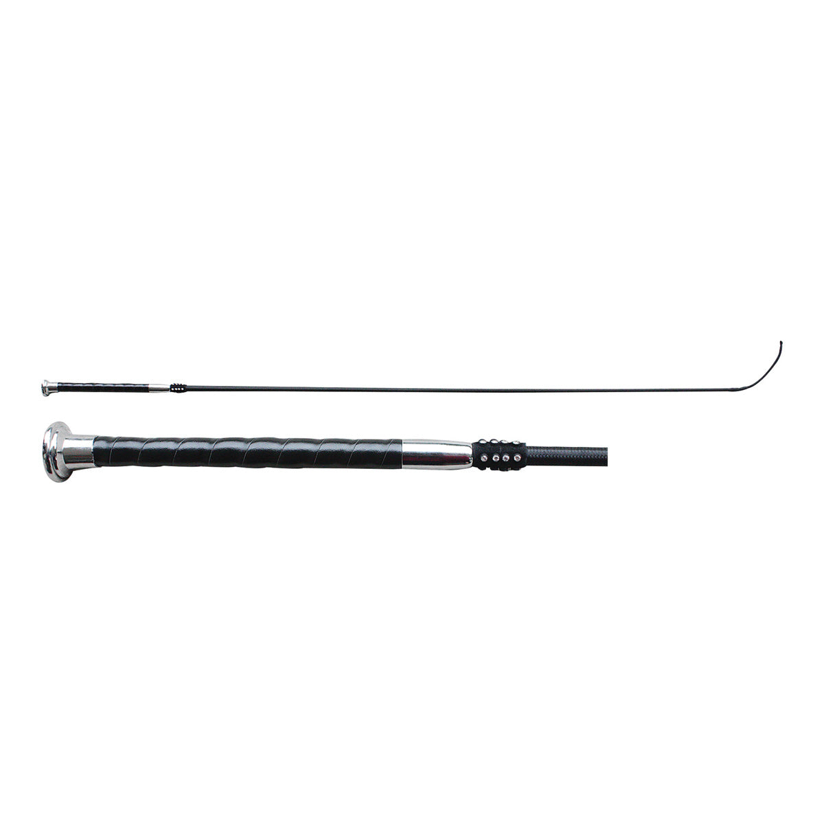 110cm Dressage whip with silver upper ferrule and velvet handle with diamante encrusted rowel.