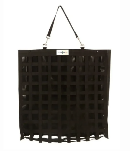 Eureka Slow Feeder Hay Bag with square pattern on front in black with pull closures either side and handles.