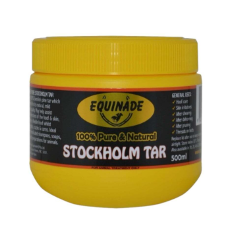 Equinade Stockholm Tar has been formulated from 100% Swedish pine tar to assist in the treatment of split hooves, split heels, cracks and corns. This non-toxic preparation does not contain water, petroleum based chemicals or carcinogenic creosote, and may also help to combat bacterial infections of the hoof and skin.