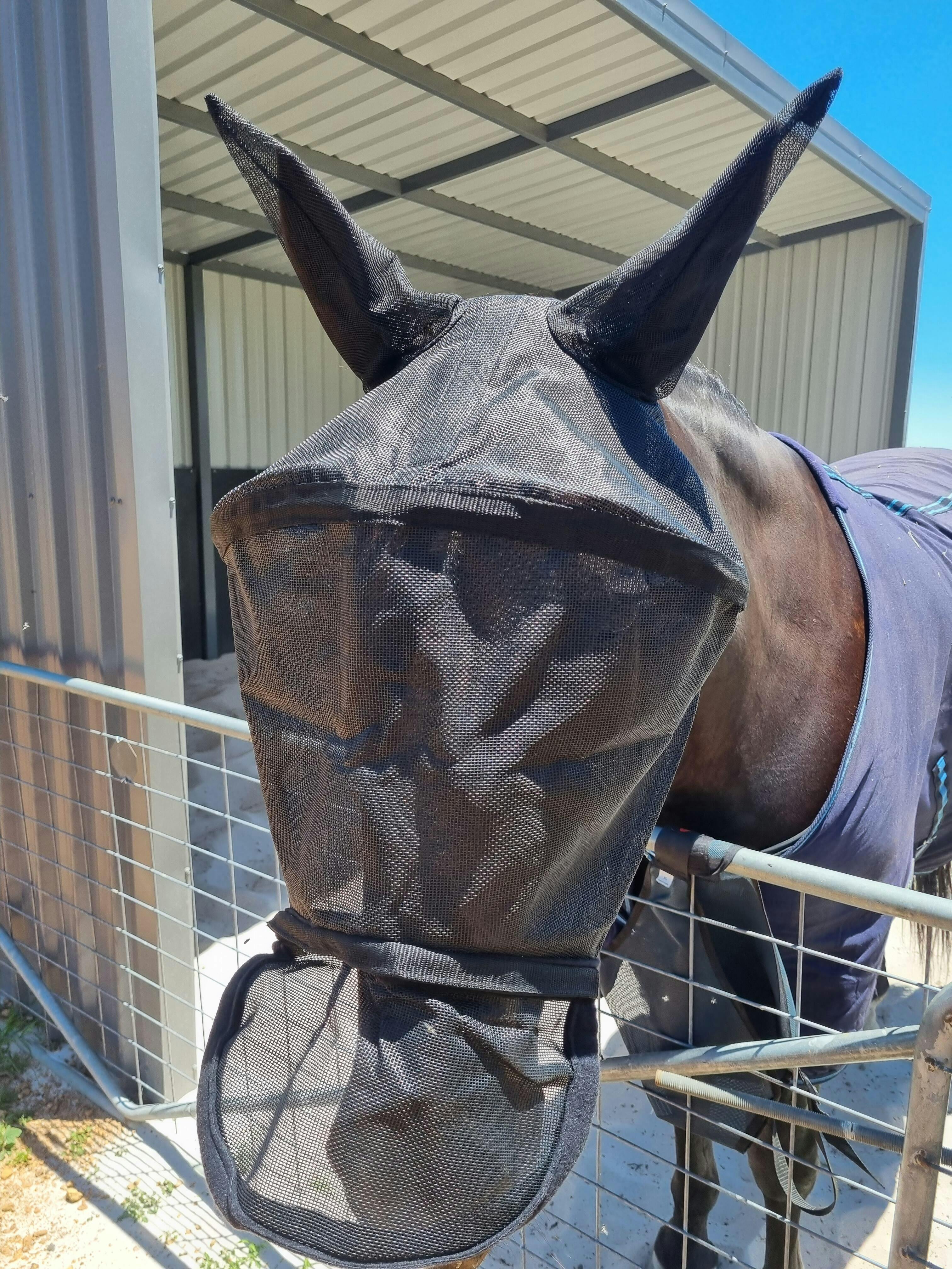 Eureka 3D Fly mask with mesh ears UV protection and to prevent irritation from insects. Wide 3D brim to avoid any irritation to the eyes