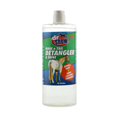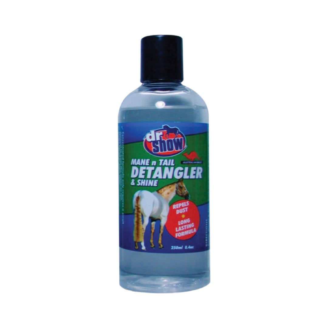 Dr Show Mane Tail Detangler is applied to a dry tail and removes knots with ease, reduces strand breakage and gives the tail a full bodied appearance with a lustrous shine. Ideal for dogs too, simply apply to a wet coat help kill fleas and assist in pulling out of undercoat. Available in 125ml, 250ml 1ltr.