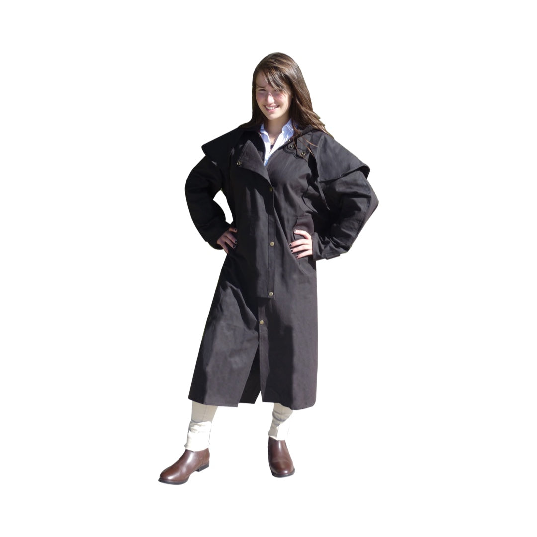 The Nullarbor Full Length Oilskin Coat is a quality, genuine brown oilskin coat providing full coverage in the coldest of winters.