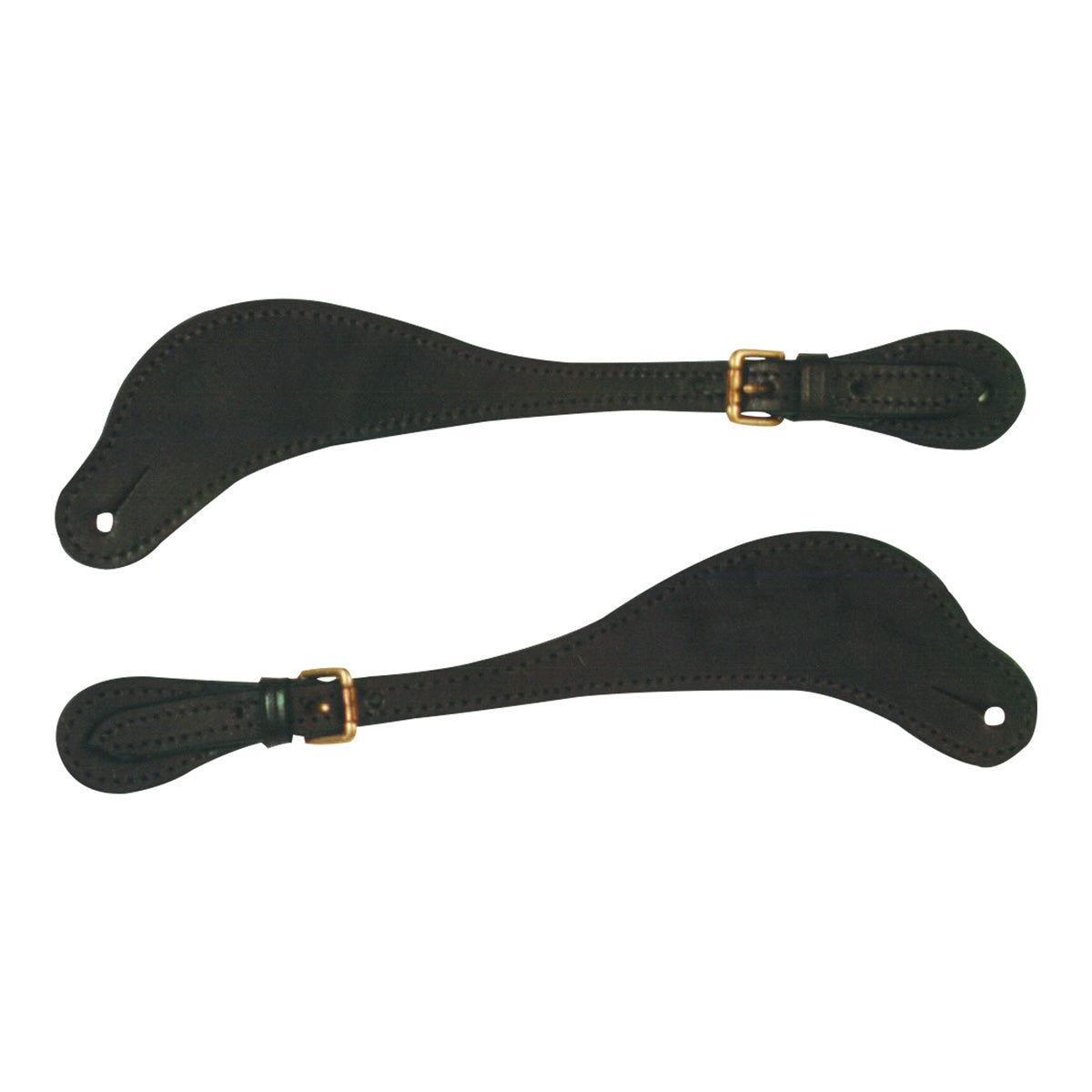 The Navaho Western Spur Straps are available in dark brown stitched leather with brass plated buckles.