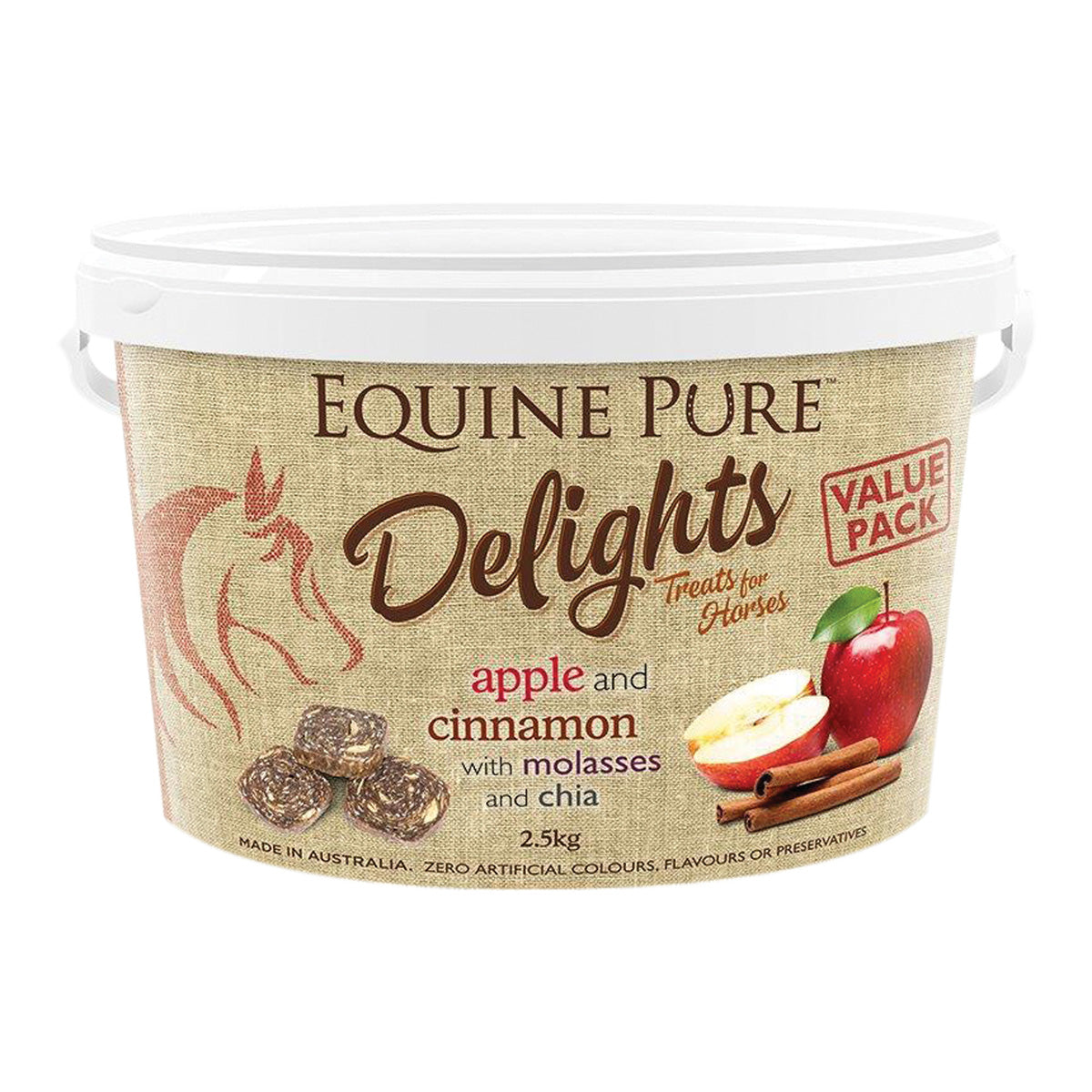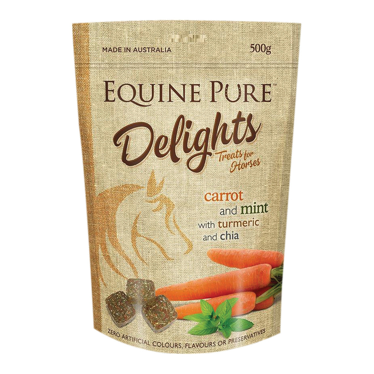 Equine Pure Delights are a NEW premium horse treat made in Australia. Available in a 500gm pouch or 2kg bag of nutritious and healthy treats, infused with chia seeds. Suitable for all ages and breeds and are available 3 yummy flavours. Apple and Cinnamon with molasses and chia, Carrot and Mint with turmeric and chia, or Peppermint and Spinach with parsley and chia.