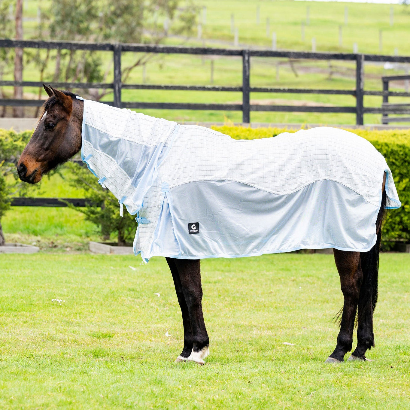 This rug features a durable polycotton topline paired with a lower insert of 130gsm breathable, lightweight mesh - perfect for keeping your horse cool and comfortable. Made from a quality blend of 80% polyester and 20% cotton, it offers a great balance of durability and softness.