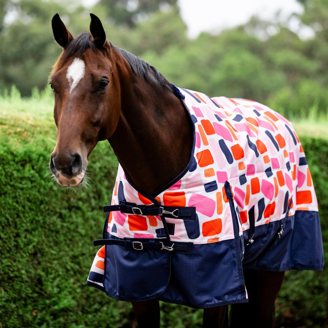 Keep your horse warm and protected during the colder months with the Pink Mosaic 1200D Medium Rug - 180g. Designed for durability and comfort, this rug features: