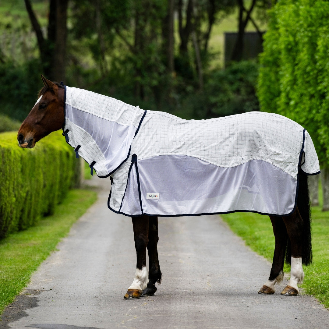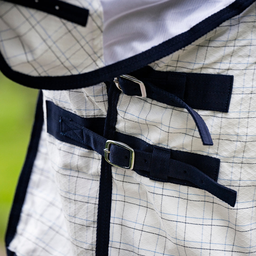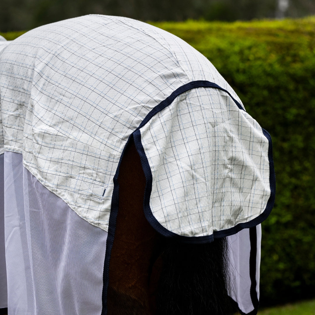 This rug features a durable polycotton topline paired with a lower insert of 130gsm breathable, lightweight mesh - perfect for keeping your horse cool and comfortable. Made from a quality blend of 80% polyester and 20% cotton, it offers a great balance of durability and softness.