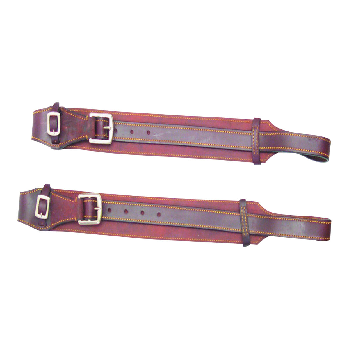 2.5 inch wide stitched stockman fenders which taper to 1 at buckle.