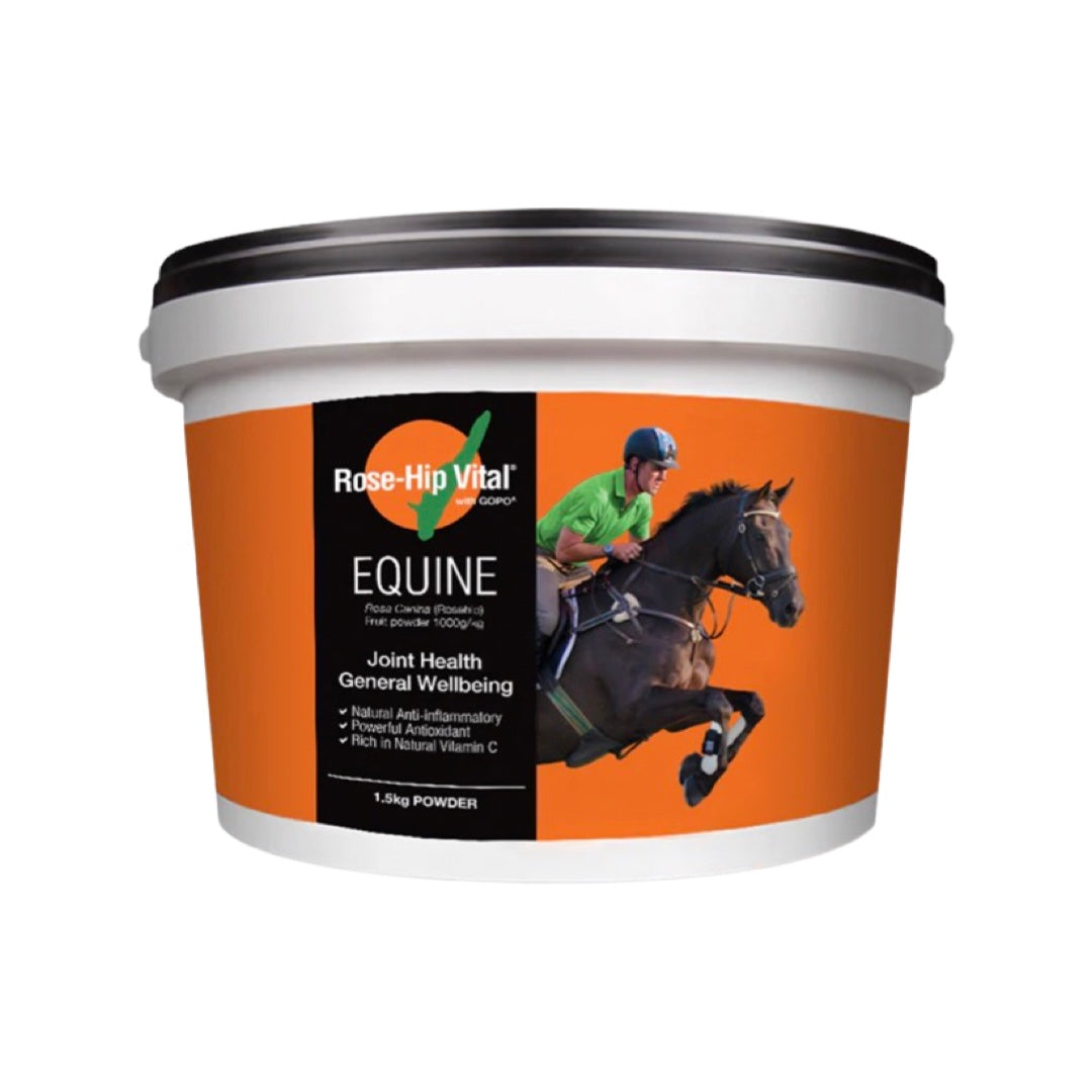 Rose-Hip Vital® Equine is a plant-based anti-inflammatory and immune system support for your horses joint health and general wellbeing. Made from Rosehips manufactured with patented processes, Rose-Hip Vital® Equine is scientifically proven to reduce inflammation, protect cartilage, improve general health and improve performance. Patented extraction and drying processes isolate and activate the compound GOPO® which has scientifically proven anti-inflammatory and antioxidative properties.