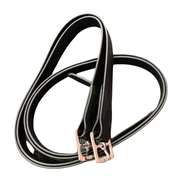 The Showcraft Synthetic Stirrup Leathers are 1" wide x 56" overall length. They feature Stainless Steel buckles and are available in black.
