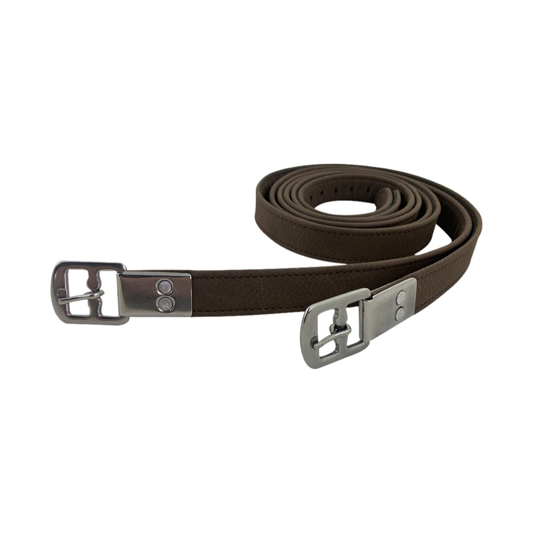 The Status E2 Synthetic Stirrup Leathers are riveted so the buckle is extremely securely attached to the leather. These stirrup leathers are also fully stitched and come in a variety of lengths to suit children through to tall adults. Available in black & brown.
